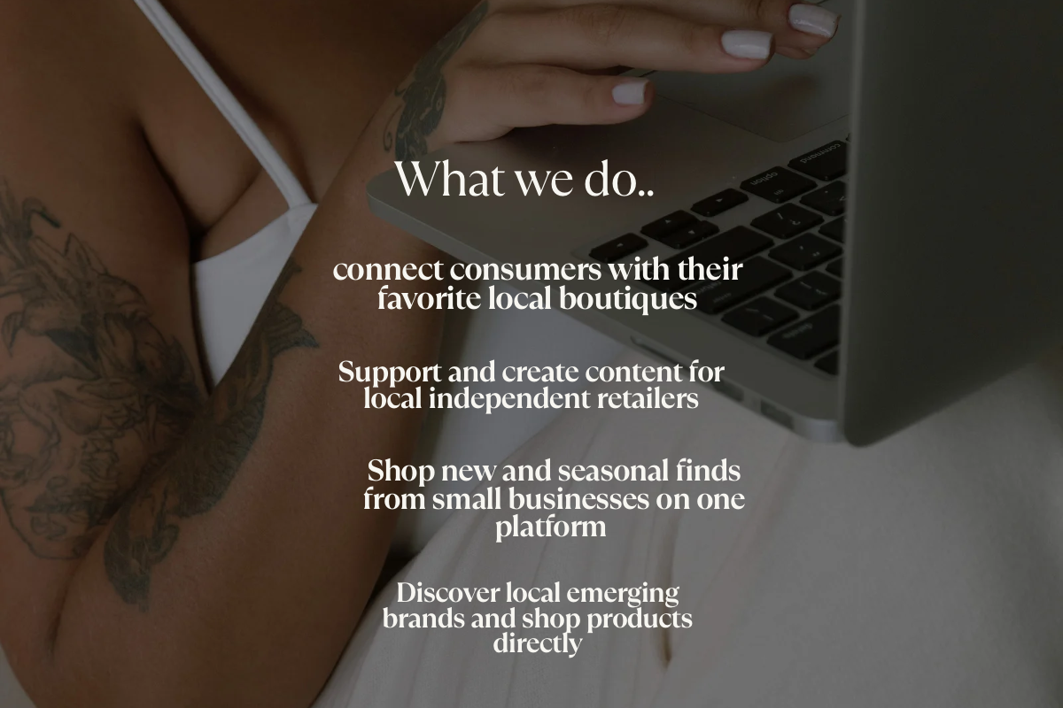 After owning a women’s clothing boutique for four years, I’ve realized there’s a huge gap in the market in supporting local retailers. Our mission is to empower independent retailers through content creation and customer engagement.